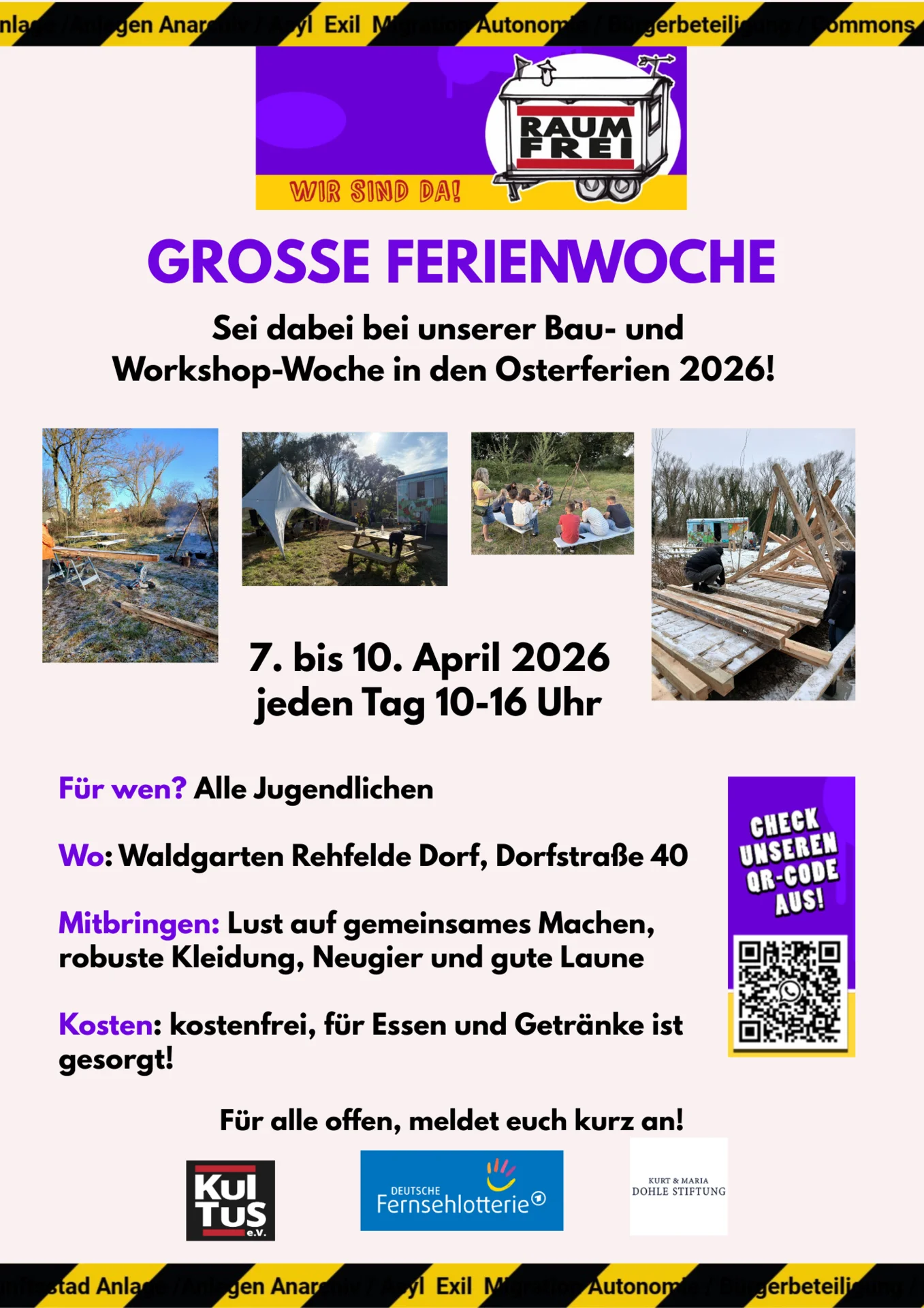 Bitte meldet euch für die Woche an, damit wir besser planen können und eine Teilnahmeerlaubnis der Personensorgeberechtigten vorliegt. E-Mail: jan@kultus-verein.de