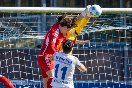 Es war ein recht umstrittener Foulelfmeter, der die Gäste auf dem Petershagener Waldsportplatz auf die Siegerstraße brachte. Romario Hartwig ließ Blau-Weiß-Torhüter Emmanouil Demenikoso keine Chance und verwandelte sicher nach 72. Spielminuten. Zu erwähnen ist ein Pfostenschuss von Tim Bolte, der einen Freistoß aus etwa 25 Metern wunderbar auf des Ludwigsfelder Tor zirkelte (33.). Kurz danach hatte Blau-Weiß eine Doppelchance durch Raif Yamann sowie Moritz Wache.