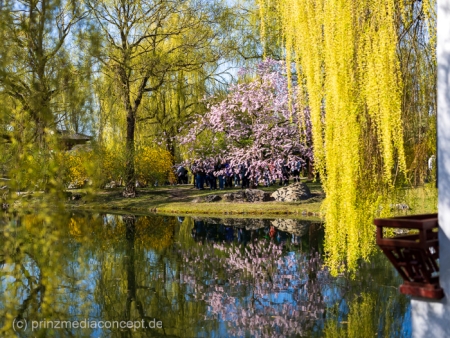 Zwischen den pink und weiß blühenden Bäumen in den Gärten der Welt wurde es schnell voll. Familien, Cosplayer, Neugierige, Kameras überall. Und mittendrin diese besondere Mischung aus Ruhe und Trubel. Oben die zarten Blüten, unten das Leben.