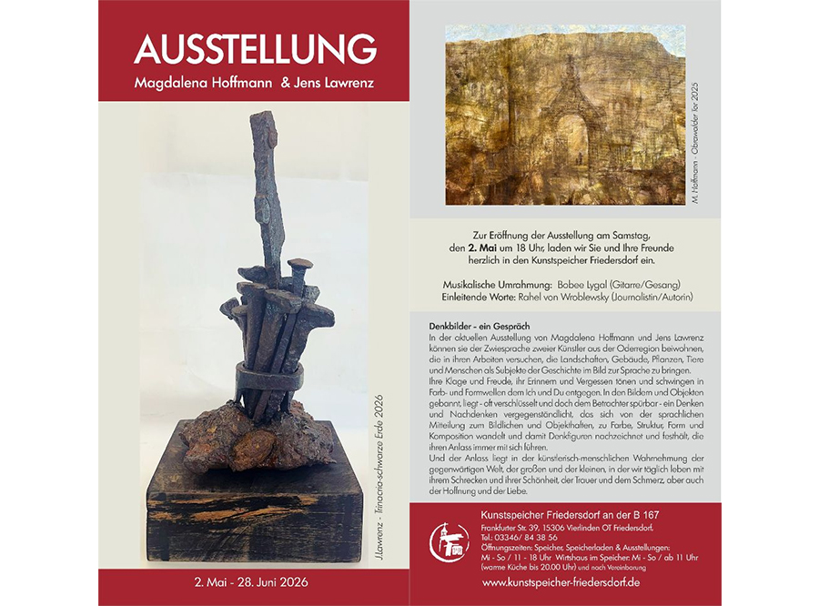 Der Freundeskreis Friedersdorf e.V. lädt Sie herzlich ein, zur Ausstellungseröffnung am 2. Mai 2026 um 18:00 Uhr.