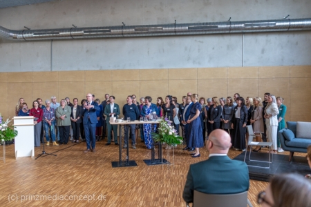 Auf diesen Tag haben viele lange gewartet. Am Freitag, den 24. April 2026 wurde durch einen Festakt die Nachsorgeklinik am Straussee, eine Rehaeinrichtung für herz- und krebskranke Kinder, Jugendliche und ihre Familien feierlich eröffnet. Im Beisein von Brandenburgs Minister fpr Arbeit, Soziales, Gesundheit und gesellschaftlichen Zusammenhalt René Wilke, Peter und Ingeborg Fritz (Stiftung), Landrat Gernot Schmidt, Bürgermeisterin Elke Stadeler, Klinikleitung Jan Dreher, Karsta Dietrich und Dr. Hendrik Spriestersbach und vielen Vertretern des regionalen öffentlichen Lebens wurde die Entwicklung der Klinik bis zur Fertigstellung reflektiert. Künftig werden hier bis zu 120 Arbeitsplätze geschaffen. Am Samstag (25.04.2026) ist von 10:00 Uhr bis 15:00 Uhr ein Tag der offenen Tür geplant, an dem alle Gäste die Klinik kennenlernen können.