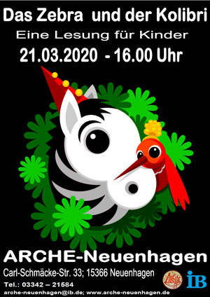 Am Samstag, dem 21. März findet in der ARCHE-Neuenhagen eine musikalische Lesung unter dem Titel "Das Zebra und der Kolibri" statt.