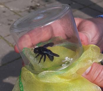 Normalerweise lädt Bürgermeister Ansgar Scharnke im April immer zur Neubürgerbegrüßung ins Rathaus. In diesem Jahr musste diese schöne Tradition wegen der Corona-Pandemie unterbleiben. Stattdessen begrüßte der Bürgermeister einen Neubürger ganz anderer Art vor dem Rathaus: eine Große Blaue Holzbiene, die ihm Konrad Stemmler präsentierte. Die wärmeliebende Wildbiene ist noch neu in unseren Gefilden, denn eigentlich stammt sie aus Südeuropa. Im Zuge des Klimawandels hat sie sich in den letzten Jahren immer weiter nach Norden ausgebreitet und scheint sich nun auch in Neuenhagen wohl zu fühlen. Mit fast drei Zentimetern Körperlänge ist diese Wildbiene die größte Bienenart in Deutschland. Ihr tiefschwarzer Körper schimmert im Sonnenlicht blau, erläuterte Konrad Stemmler, der die Biene in seinem Garten eingefangen hatte, um sie dem Bürgermeister zu präsentieren. Im Stemmlerschen Garten labt sie sich vor allem an den Blüten des Mirabellen- und Pfirsichbaums und bewohnt einen Totholzstamm.