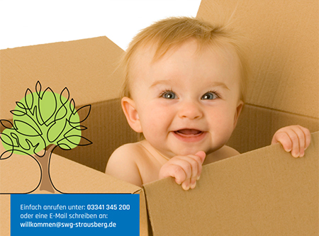 Die Strausberger Wohnungsbaugesellschaft mbH will den Nachwuchs in ihren Wohnungen fördern. Dazu wurde eine Aktion für frisch gebackene Eltern gestartet. Erstens erhalten die Eltern ein großes Baby-Willkommens-Überraschungs-Paket und zweitens wird durch die SWG für jedes Neugeborene ein Baum im Strausberger Stadtgebiet gepflanzt.