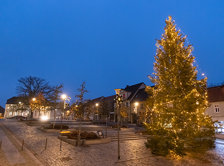 Auch wenn es in diesem Jahr in Strausberg keinen Weihnachtsmarkt gibt, der Weihnachtsbaum ist am Markt mitten in der Altstadt aufgestellt und geschmückt.