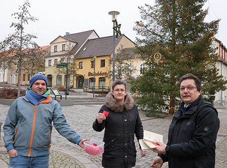 Am Freitag wurden die ersten drei Preise für die Weihnachtsaktion des Gewerbevereins Strausberger Altstadt e.V. verlost. Optiker Thomas Frenzel (Chef des Gewerbevereins) Thomas Luther vom Bioladen und Nicole Piontek von der Stadtapotheke zugen die Losnummern 1537 (150 Euro) 1350 (100 Euro) und 1359 (50 Euro). Die Losnummern erhalten die Kunden beim Einkauf in den einzelnen Geschäften der Strausberger Altstadt. Diese Aktion wird zum dritten Advent fortgesetzt. Zum vierten Advent wird zusätzlich weitere Sonderpreise geben.