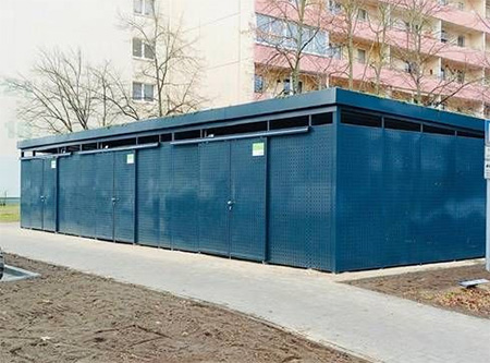 Seit 14. Dezember 2020 können die Mieterinnen und Mieter an den Giebeln der Häuser Otto-Grotewohl-Ring 8, Otto-Grotewohl-Ring 17, Otto-Grotewohl-Ring 34 und Otto-Grotewohl-Ring 46 diese Müllhäuser für Restmüll, Pappe und Papier sowie natürlich auch für Gelbe Säcke nutzen.