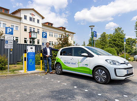 „Die Giro-e-Abrechnung macht den Ladevorgang endlich so einfach und unkompliziert, wie er sein sollte“, stellt Frank Elstermann bei der Endabnahme der Ladesäule (siehe Foto) fest. „Und ein gutes Gefühl tankt man gleich mit, weil an unseren Ladesäulen selbstverständlich ausschließlich Ökostrom bereitgestellt wird. Jeder Tankvorgang ist ein kleiner Beitrag zum Klimaschutz in unserer Stadt.“