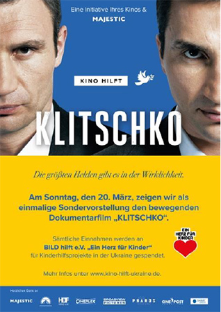 An der Kinokasse haben die Gäste zudem die Möglichkeit, diesen Betrag auch noch zu erhöhen in 5€ Schritten. Die gesamten Erlöse aus dem Ticketverkauf fließen als Spende an BILD e.V. „Ein Herz für Kinder“, um dringend benötigte Hilfsmaßnahmen für die vom Krieg betroffenen ukrainischen Kinder und Familien zu unterstützen. Die Klitschko-Brüder sind bereits seit Jahren mit BILD e.V. „Ein Herz für Kinder“ persönlich verbunden.