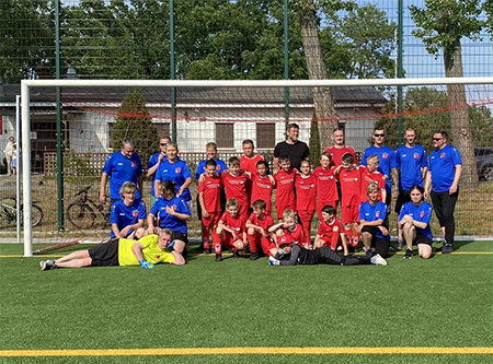 In einem spannenden Duell schlugen die Nachwuchskicker des TSG Rot-Weiß Fredersdorf die Mannschaft des KATHARINENHOF AM DORFANGER am Donnerstagabend verdient mit 3:2 Für die Demenzeinrichtung trat ein bunt gemixtes Team aus Mitarbeitenden gegen die U11Nachwuchskicker des Lokalvereins TSG an.