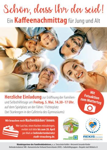 Wir möchten Euch alle herzlich 5.Mai zwischen 14.30Uhr und 17Uhr zur Eröffnung der diesjährigen Familien- und Selbsthilfetage im Mai einladen. Wir wollen auf dem Spielplatz an der Fähre/ Fichteplatz gemütlich Kaffee trinken. Die Tanzschule Kolibri wird uns unterhalten, einige Bündnispartner informieren über interessante Angebote und es gibt eine Fotoaktion zum Muttertag.