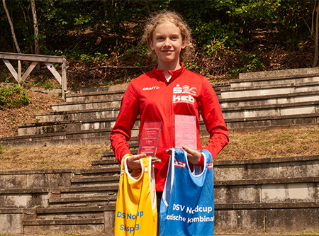 Sekunde Vorsprung gewinnen. Auch das bedeutete wieder, auch der Gesamtsieg in der Nordischen Kombination gehörte Mila Twarok. Viermal konnte sie dadurch in Wernogerode auf das begehrte oberste Podest des Treppchens steigen.