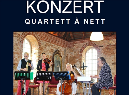 Der Förderverein Schul- und Bethaus Wuschewier e.V. lädt am 26.08.23 um 14:30 Uhr zu einem Konzert der besonderen Art ein. Das "Quartett á nett" ist zu Gast im Garten des Schul- und Bethauses in Wuschewier und tritt mit seinem Programm "Damals im Radio..." auf. Es wird Musik aus den ersten Jahrzehnten des Rundfunks gespielt, die heute nur noch selten zu hören ist: Melodien aus alten Filmen, Nachkriegsschlager, amerikanische Evergreens, flotte Stücke aus verschiedenen Weltgegenden. Wer danach noch Lust auf Kaffee und selbstgebackenen Kuchen unter dem Apfelbaum hat, ist herzlich willkommen. Der Eintritt ist frei, um eine angemessene Spende für Konzert und Bewirtung zur Pflege und Erhaltung des Schul- und Bethauses wird gebeten. Aktuelle Informationen bekommen Sie auf unserer Internetseite unter bethaus-wuschewier.de. Gern können Sie den beigefügten Flyer an Verwandte und Freunde weitergeben.