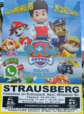 Am Freitag, den 25. August 2023 um 16:00 Uhr startet ein Puppenspiel für die ganze Familie im Strausberger Kulturpark. PAW Patrol Helfer auf vier Pfoten stehen auf dem Programm.