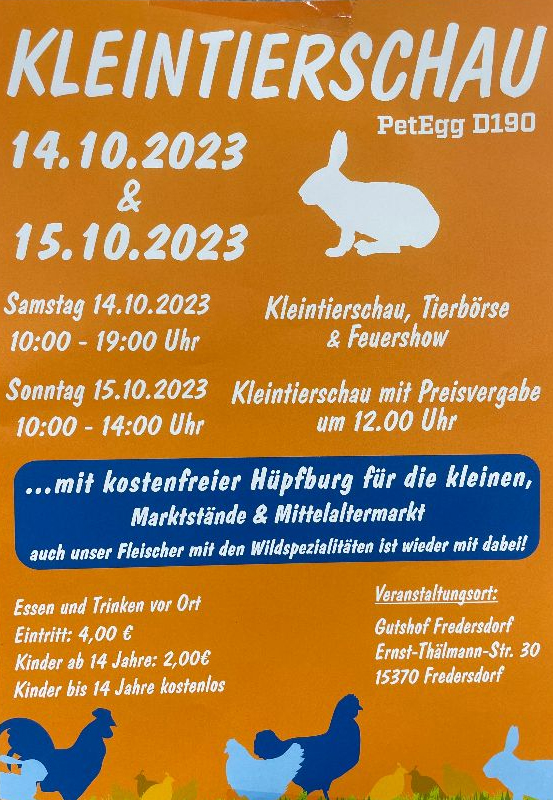 Besuchen Sie die Kaninchenschau des Vereins D 190 und in 15370 Fredersdorf.