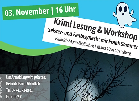 Die Heinrich-Mann-Bibliothek Strausberg lädt am 3. November 2023 ab 16:00 Uhr zu einer Krimi Lesung mit Workshop mit Frank Sommer ein.