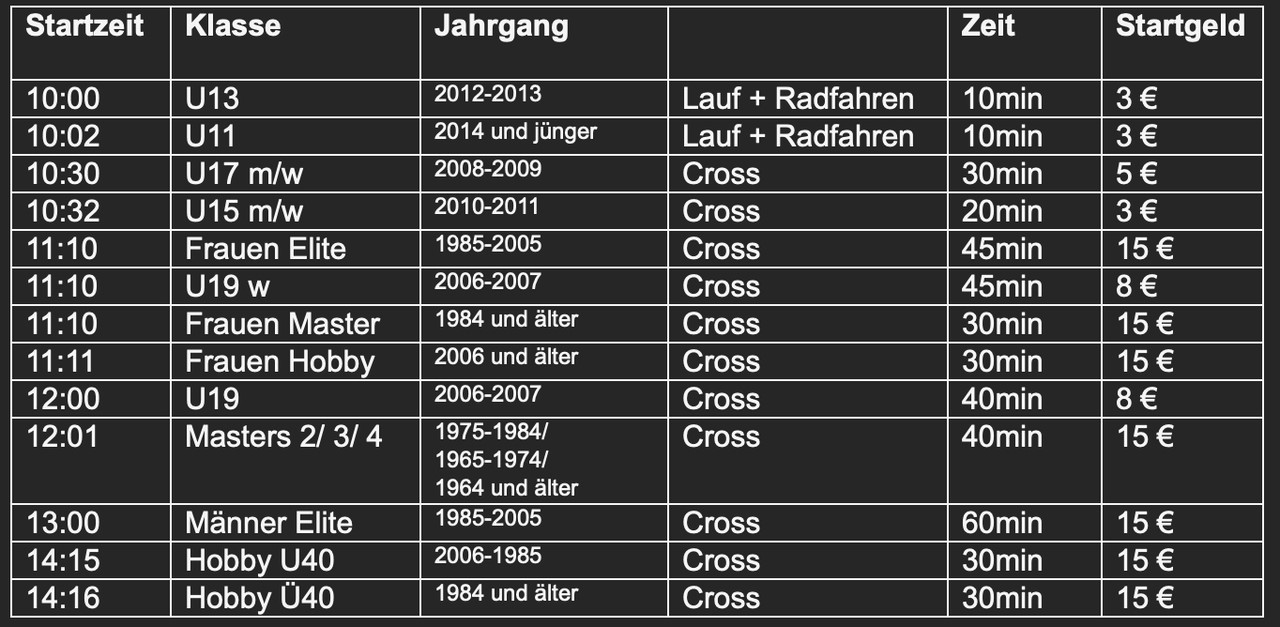 Wikipedia sagt: Cyclocross ist eine Disziplin des Radsports. Die Sportart wird fast ausschließlich im Herbst und Winter auf Rundkursen mit meist unbefestigten Wegen ausgetragen. Die Rennen werden mit modifizierten Cyclocross-Rädern, also Rennrädern mit klassischem gebogenen Rennlenker und ohne Federung gefahren.
