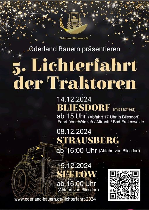 Die Oderland Bauern e.V. präsentieren die 5. Lichterfahrt der Traktoren. Diese findet am