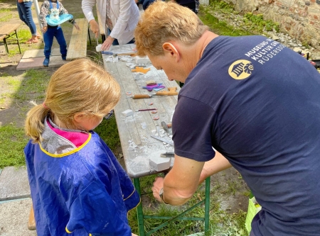 In unserem Kreativ-Workshop gestaltest Du, passend zum Osterfest, unter Anleitung Deine eigene Deko für den Osterstrauß. Nach einer kurzen Einführung rühren wir gemeinsam Gips an, um unsere Rohformen zu gießen. Damit Du nicht den ganzen Tag warten musst, bis der Gips fest geworden ist, haben wir bereits fertige Anhänger vorbereitet. Jetzt kannst Du den Pinsel schwingen und Deine Anhänger bemalen, damit Dein Osterstrauß schön bunt wird. Während die Farbe trocknet, basteln wir hübsche Osterkörbchen damit Du Deine Kunstwerke auch sicher nach Hause transportieren kannst.