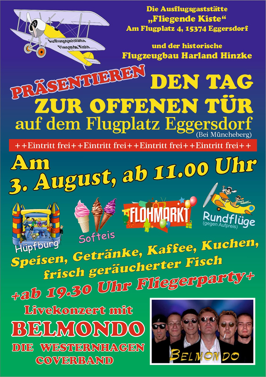 ab 19:30 Uhr Fliegerparty und Livekonzert mit BELMONDO, der Westernhagen Coverband aus der Region.