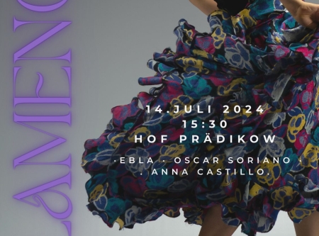 Bereiten Sie sich darauf vor, in die leidenschaftliche Welt des Flamenco einzutauchen, wo Herz und Kunst in einer spektakulären Darbietung von Emotionen und Talent aufeinandertreffen. Hof Prädikow lädt Sie herzlich zu einem unvergesslichen Abend mit authentischen Flamenco-Darbietungen ein. Wir haben das Glück diesmal zwei Künstler direkt aus Spanien dabei zu haben. Lasst uns den Sommer gemeinsam mit traditionellen Flamenco zelebrieren!