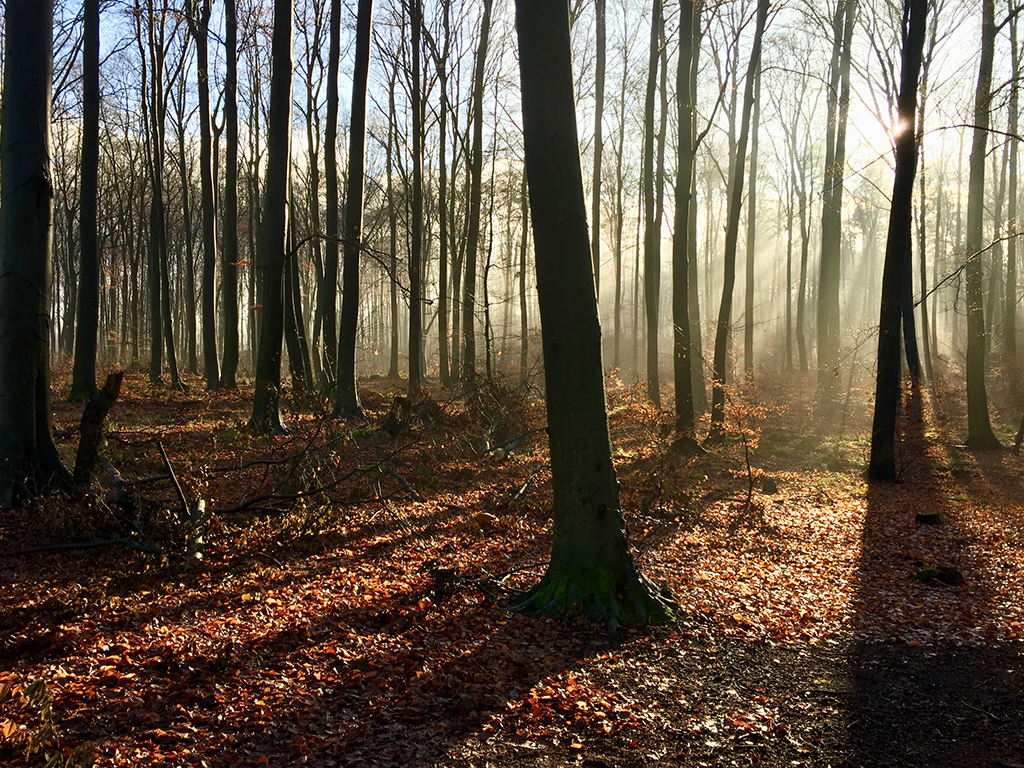 Durch den Buchenwald Grumsin, rotes Buchenblatt, dann weiter auf dem Wolletzseerundweg. 6,5 Kilometer, rund 2,5 Stunden.